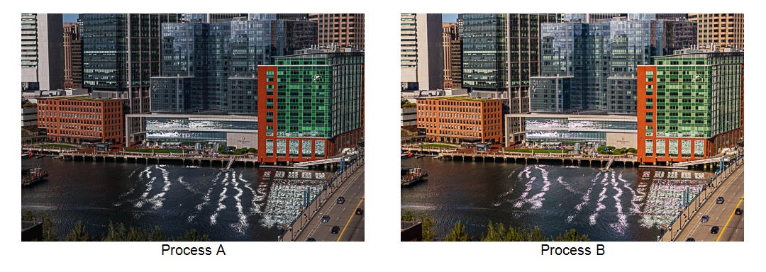 Below: my first comparison using that creator’s method versus my own. Can you tell which is which?