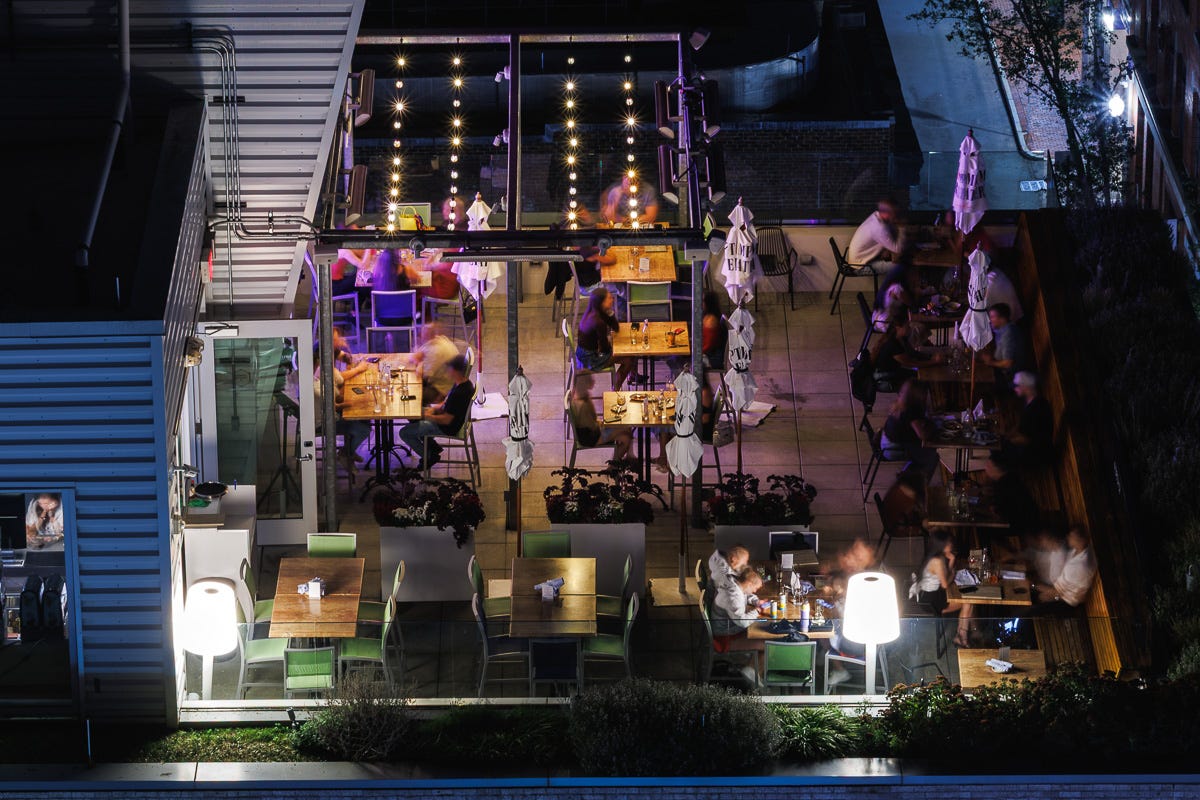 And to follow up my ghosts essay on long exposures of crowds from a few posts ago, I caught the outdoor rooftop restaurant crowd in long exposure as well.